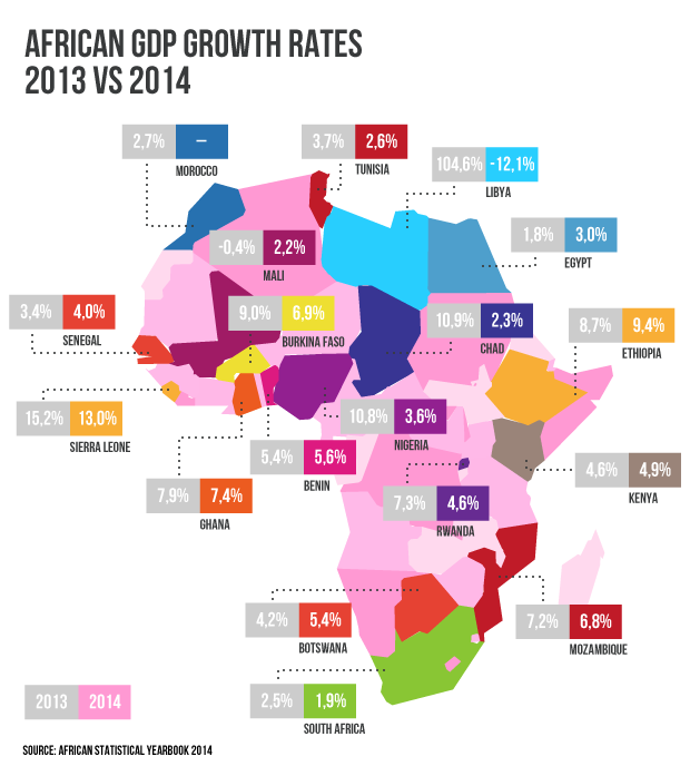 Clearly, Africa’s economies are some of the fastest-growing in the world, making them overflowing with investment opportunities. According to the International Money Fund, compared to global forecast growth of 3.2% in 2015, Kenya’s GDP alone is expected to grow about 6%, making it the country with the third-fastest projected growth in 2015. Nigeria, Africa’s largest economy, is also expecting growth of 7.3% in 2015. In contrast, the U.S. is expected to grow 3.1%, and the EU, a mere 1.2%.